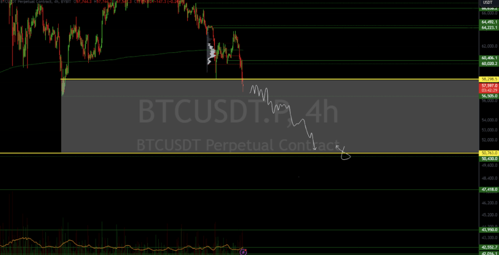 The critical support level currently is $58,298.5, price has recently started to find acceptance below it.